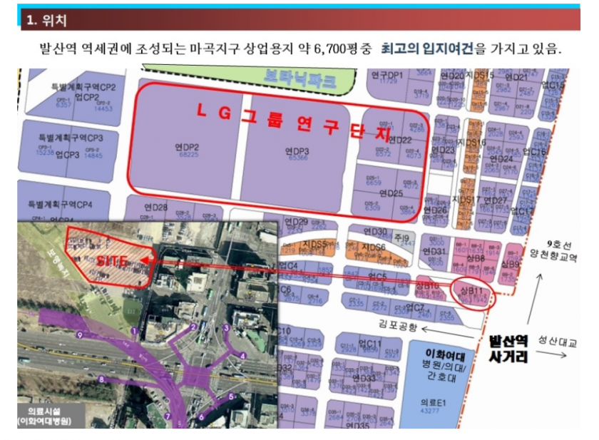 -마곡지구 주출입구 발산역1번,9번출구 LG사이언스 방향.